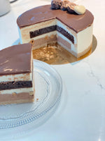 كعكة موس الشوكلاطة البيضا والبنية مع اسفنج الشوكلاطة